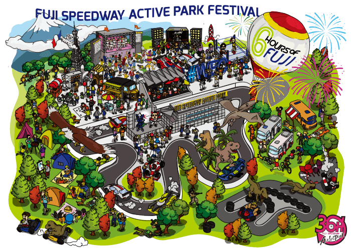 レースを中心にFSW全体を盛り上げていく 36HOURS OF FUJI をはじめ、恐竜パーク・富士ジュラシックウェイやナイトシアター、フランスフェア(ヴィラージュ・ボ ンジュールフランス)など老若男女問わず楽しめます。富士スピードウェイでの車中泊&BBQ。特設エリアのステージでは立川談笑さんの野外落語や和太鼓団体「足久保太鼓」の演奏などCAMP JAPAN特設ステージで行われるステージイベントも必見です。